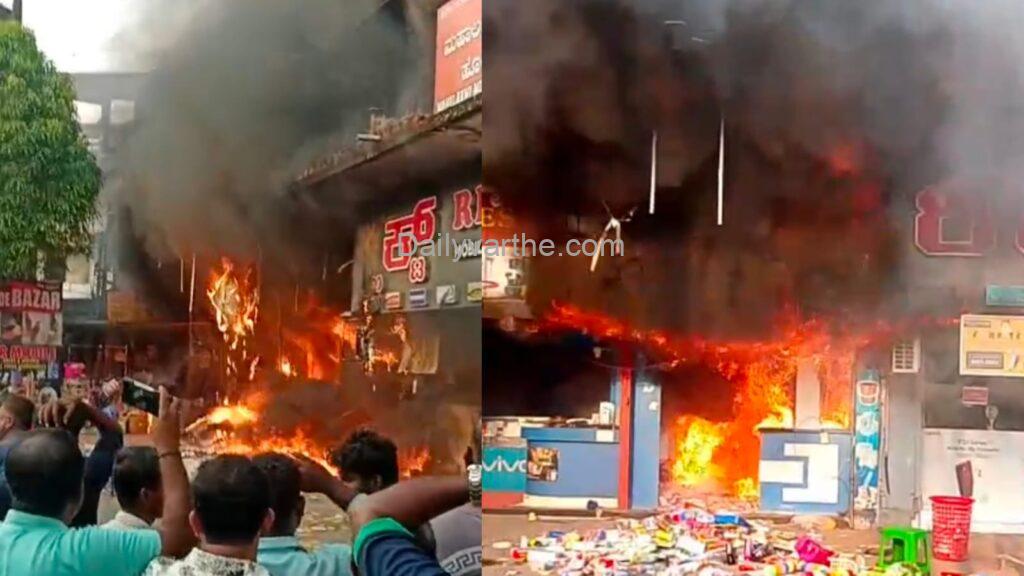 ಏಕಾಏಕಿ ಹೊತ್ತಿಕೊಂಡ ಬೆಂಕಿ ಕ್ಷಣಾರ್ಧದಲ್ಲಿ ವ್ಯಾಪಕವಾಗಿ ಹರಡಿಕೊಂಡು ಕನಿಷ್ಠ ಐದುಕ್ಕೂ ಹೆಚ್ಚು ಅಂಗಡಿ ಮಳಿಗೆಗಳನ್ನು ಸಂಪೂರ್ಣವಾಗಿ ಭಸ್ಮಗೊಳಿಸಿದೆ.