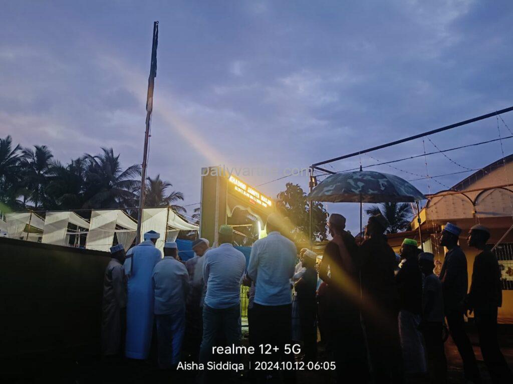 ಜಮಾತಿನ ಖತೀಬರಾದ ಮೌಲಾನಾ ಅಖ್ಲಾಕ್ ರಝ್ವಿ ದುವಾ ನೆರವೇರಿಸಿದರು. ಮಸೀದಿಯ ಅಧ್ಯಕ್ಷರಾದ ಮುಹಮ್ಮದ್ ರಫೀಕ್ ಎಂ, ಉರೂಸ್ ಸಮಿತಿಯ ಅಧ್ಯಕ್ಷರಾದ. ಬಿ. ಎಸ್ಸ್ ಸುಬ್ಹಾನ್ ನೇತೃತ್ವ ನೀಡಿದರು. ನಂತರ ದರ್ಗಾ ಶರೀಫ್ ನಲ್ಲಿ ಖತ್ಮುಲ್ ಕುರ್ಆನ್ ಮತ್ತು ಸಾಮೂಹಿಕ ಪ್ರಾರ್ಥನೆ ನಡೆಯಿತು.