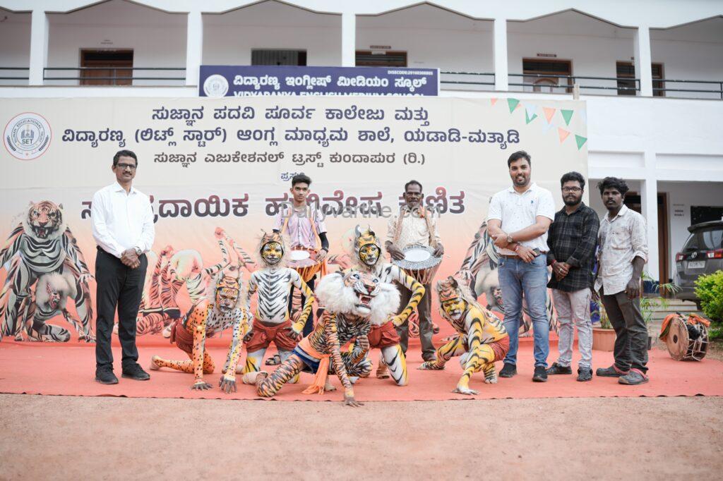 ಸಾಂಸ್ಕೃತಿಕ ಆಚರಣೆ,ಕಲೆ, ಸಂಸ್ಕಾರಕ್ಕೆ ಹೆಚ್ಚಿನ ಒತ್ತು ನೀಡುವ ಕುಂದಾಪುರದ ಸುಜ್ಞಾನ ಎಜುಕೇಶನ್ ಟ್ರಸ್ಟ್(ರಿ )ವಿದ್ಯಾರಣ್ಯ ಆಂಗ್ಲ ಮಾಧ್ಯಮ ಶಾಲೆ, ಸುಜ್ಞಾನ ಪದವಿ ಪೂರ್ವ ಕಾಲೇಜಿನಲ್ಲಿ ವಿಶೇಷ ಆಕರ್ಷಣೆಯಾಗಿ ಚೌಡೇಶ್ವರಿ ಹುಲಿ ವೇಷ ಕುಣಿತ ತಂಡ ಕುಂದಾಪುರ ಇವರಿಂದ ಸಾಂಸ್ಕೃತಿಕ ಹುಲಿ ವೇಷ ಕುಣಿತ ಪ್ರದರ್ಶನ ನಡೆಯಿತು. ಶಾಲಾ ಮತ್ತು ಕಾಲೇಜು ವಿದ್ಯಾರ್ಥಿಗಳು ಬಹಳ ಉತ್ಸಾಹದಿಂದ ಹುಲಿವೇಷದೊಂದಿಗೆ ಹೆಜ್ಜೆ ಹಾಕಿದರು.ರಾಜ್ಯ ಹಾಗೂ ಹೊರ ರಾಜ್ಯದ ವಿವಿಧ ಭಾಗಗಳಿಂದ ಬಂದಿರುವ ವಿದ್ಯಾರ್ಥಿಗಳಿಗೆ ರಾಜ್ಯದ ವಿವಿಧ ಭಾಗದ ಸಾಂಸ್ಕೃತಿಕ ಮತ್ತು ಸಾಂಪ್ರದಾಯಿಕ ಆಚರಣೆಯ ಜ್ಞಾನವನ್ನು ಒದಗಿಸುವ ನಿಟ್ಟಿನಲ್ಲಿ ಬಹಳ ವೈಭವದಿಂದ ಹುಲಿ ವೇಷ ಕುಣಿತದ ಆಯೋಜನೆಯನ್ನು ಮಾಡಲಾಯಿತು.
