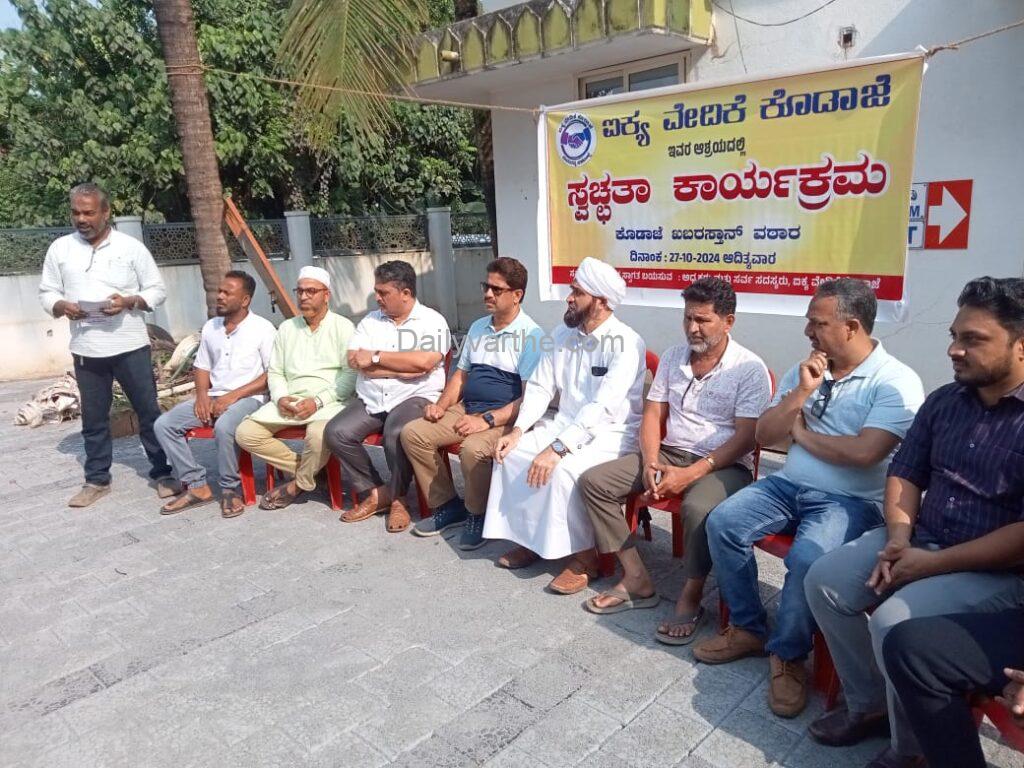 ಐಕ್ಯ ವೇದಿಕೆ ಕೊಡಾಜೆ ಇದರ ವತಿಯಿಂದ ಕೊಡಾಜೆ ಖಬರಸ್ತಾನ್ ವಠಾರದಲ್ಲಿ ನಡೆದ ಸ್ವಚ್ಚತಾ ಕಾರ್ಯಕ್ರಮವನ್ನು ಉದ್ಘಾಟಿಸಿ ಮಾತನಾಡಿದ ಅವರು ಯುವ ಸಮೂಹವು ಸಮಾಜಮುಖಿ ಕಾರ್ಯಕ್ರಮಗಳನ್ನು ಹಮ್ಮಿಕೊಳ್ಳುವ ಮೂಲಕ ನಾಡಿನಲ್ಲಿ ಶಾಂತಿ, ಸಾಮರಸ್ಯ ಸೌಹಾರ್ದತೆಯ ಬದುಕಿಗೆ ಪ್ರೇರಣೆ ನೀಡಬೇಕಾಗಿದೆ. ಈ ನಿಟ್ಟಿನಲ್ಲಿ ಐಕ್ಯ ವೇದಿಕೆಯು ಹಮ್ಮಿಕೊಂಡಿರುವ ಕಾರ್ಯಕ್ರಮಗಳು ಶ್ಲಾಘನೀಯ ಎಂದರು.