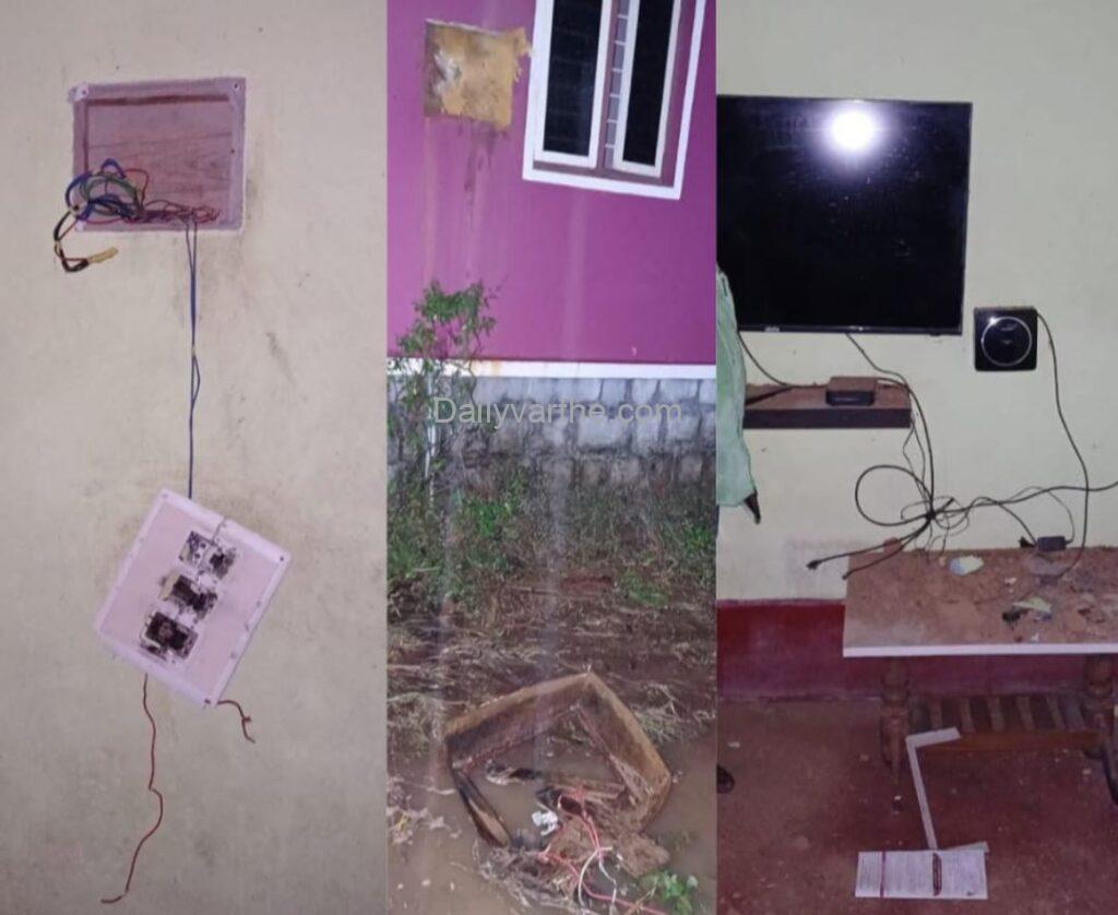 ಸಿಡಿಲ ರಭಸಕ್ಕೆ ಮನೆಯ ವಿದ್ಯುತ್ ಉಪಕರಣಗಳಿಗೆ ಹಾನಿಯಾಗಿದೆ. ಸಿಡಿಲು ಬಡಿದ ಪರಿಣಾಮ ವಿದ್ಯುತ್ ಉಪಕರಣಗಳು ಸುಟ್ಟು ಕರಕಲಾಗಿದೆ.