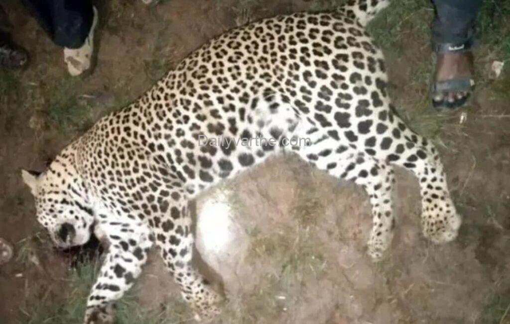 ರಸ್ತೆ ದಾಟುತ್ತಿದ್ದ ವೇಳೆ ಅಪರಿಚಿತ ವಾಹನ ಡಿಕ್ಕಿ ಹೊಡೆದು ಗಂಡು ಚಿರತೆ ಸಾವು