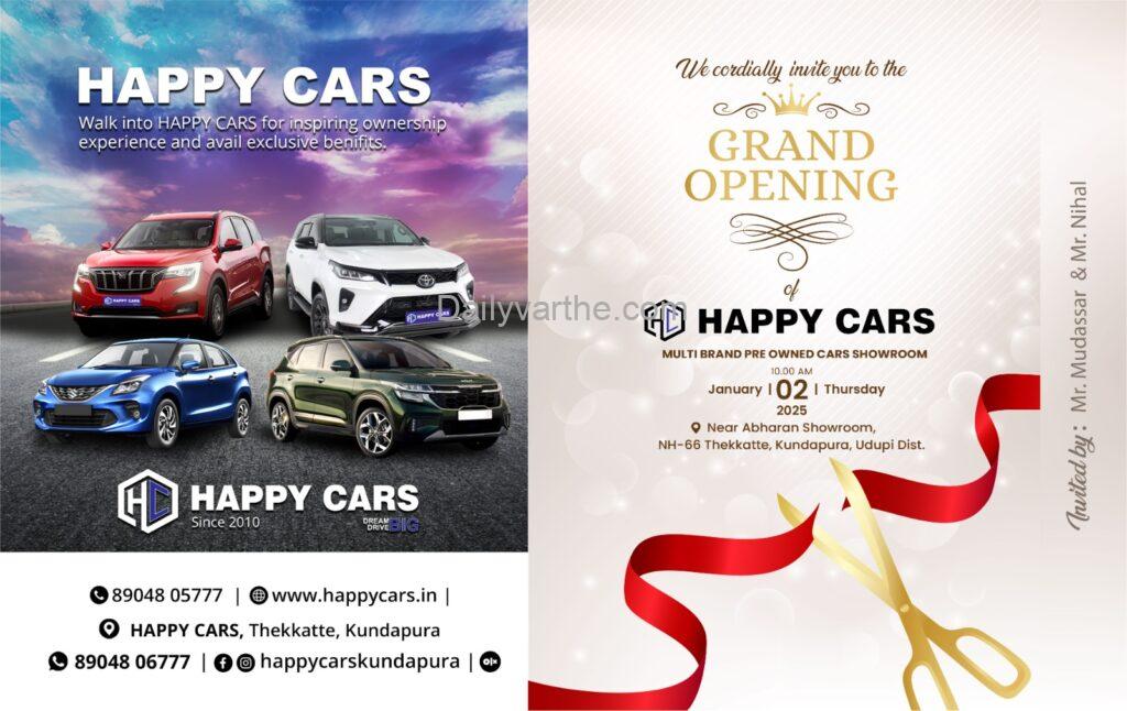 ಕೋಟ: ಕುಂದಾಪುರ ತಾಲೂಕಿನ ರಾಷ್ಟ್ರೀಯ ಹೆದ್ದಾರಿ 66ರ ಸಮೀಪ ತೆಕ್ಕಟ್ಟೆಯ ಕನ್ನುಕೆರೆಯಲ್ಲಿ ಜನವರಿ 2 ರಂದು ಹೊಸ ವರುಷದಲ್ಲಿ ಶುಭಾರಂಭಗೊಳ್ಳಲಿರುವ ಅತ್ಯುತ್ತಮ ಸೆಕೆಂಡ್ ಹ್ಯಾಂಡ್ ಕಾರ್ ಸೇಲ್ ಶೋ ರೂಂ “ಹ್ಯಾಪಿ ಕಾರ್” ಸಂಸ್ಥೆಗೆ ಕರ್ನಾಟಕ ವಿಧಾನಸಭ್ಯಾಧ್ಯಕ್ಷ ಯು.ಟಿ ಖಾದರ್ ಭೇಟಿ ನೀಡಿ ಶುಭ ಹಾರೈಸಿದರು.