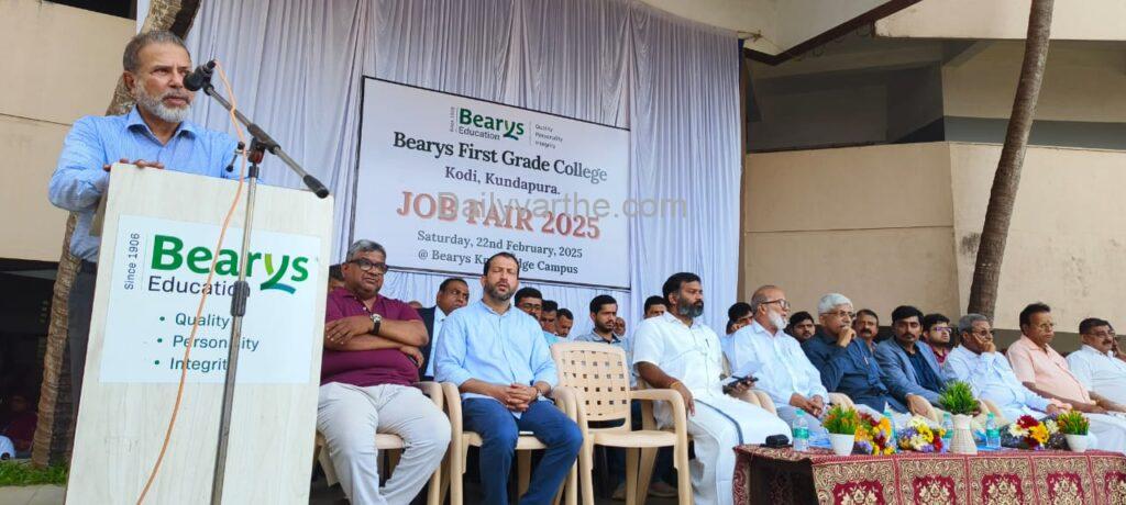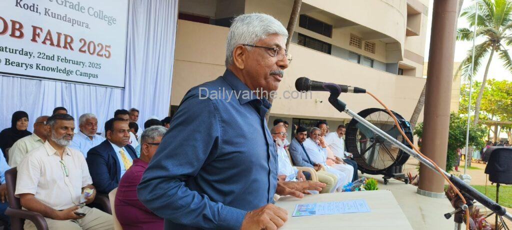 ಕುಂದಾಪುರದ ಕೋಡಿ ಬ್ಯಾರೀಸ್ ಸಮೂಹ ಶಿಕ್ಷಣ ಸಂಸ್ಥೆಯ ಬ್ಯಾರೀಸ್ ಪ್ರಥಮ ದರ್ಜೆ ಕಾಲೇಜು ವತಿಯಿಂದ ಫೆ.22 ಶನಿವಾರದಂದು ಕೋಡಿ ಬ್ಯಾರೀಸ್ ನಾಲೆಡ್ಜ್ ಕ್ಯಾಂಪಸ್ನಲ್ಲಿ ಹಮ್ಮಿಕೊಳ್ಳಲಾದ ಉದ್ಯೋಗ ಮೇಳ-2025 ಕಾರ್ಯಕ್ರಮದಲ್ಲಿ ಅವರು ಮಾತನಾಡಿದರು. ಚುನಾಯಿತ ಜನಪ್ರತಿನಿಧಿಗಳು ಯುವ ಪೀಳಿಗೆಯ ಭವಿಷ್ಯದ ಬಗ್ಗೆ ಚಿಂತನೆ ನಡೆಸಬೇಕು. ಸಮಾಜಕ್ಕೆ ಒಳಿತು ಮಾಡುವ ಕೆಲಸಗಳು ಹೆಚ್ಚು-ಹೆಚ್ಚು ಆಗಬೇಕಿದೆ. ಜೀವನದಲ್ಲಿ ಯಶಸ್ಸು ಪಡೆಯಲು ಉತ್ತಮ ದೃಷ್ಟಿಕೋನ, ಪರಿಶ್ರಮ ಅಗತ್ಯ ಎಂದರು.