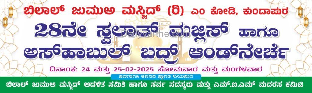 ಬಿಲಾಲ್ ಜುಮಾ ಮಸ್ಜಿದ್(ರಿ) ಎಂ ಕೋಡಿ, ಕುಂದಾಪುರ ಇದರ 28ನೇ ಸ್ವಲಾತ್ ಮಜ್ಲೀಸ್ ಹಾಗೂ ಅಸ್ಹಾಬುಲ್ ಬದ್ರ್ ಅಂಡ್ ನೇರ್ಚೆ