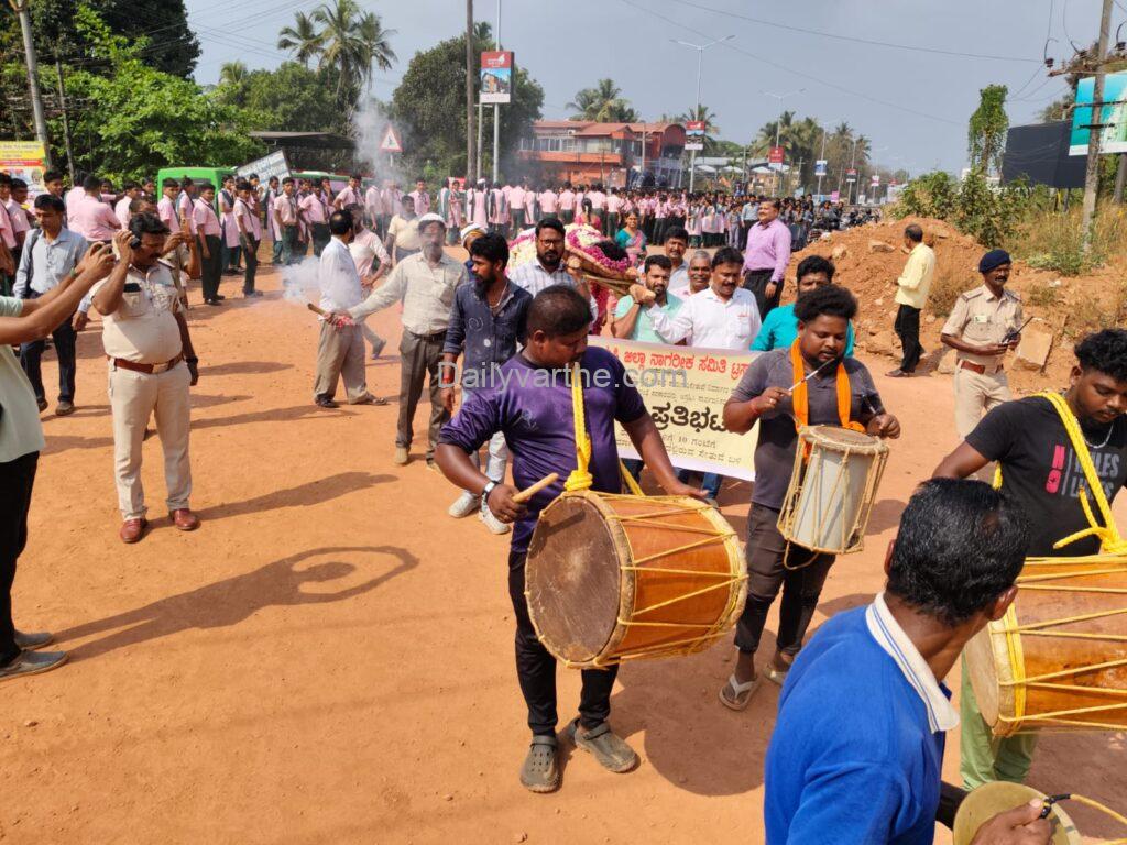 ಇಂದ್ರಾಳಿ ಇಂಗ್ಲೀಷ್ ಮೀಡಿಯಂ ಶಾಲೆಯ ಮುಂಭಾಗದಿಂದ ಪ್ರತಿಭಟನೆ ಆರಂಭವಾಯ್ತು.