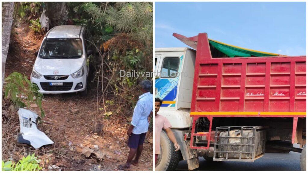 ಉಡುಪಿ: ಟಿಪ್ಪರ್ ಡಿಕ್ಕಿ ಹೊಡೆದು ಕಂದಕಕ್ಕೆ ಉರುಳಿದ ಕಾರು – ಪ್ರಯಾಣಿಕರು ಪವಾಡಸದೃಶದಿಂದ ಪಾರು!