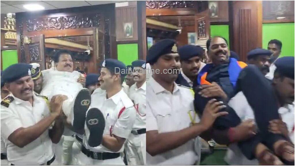 ಅಮಾನತಾದವರನ್ನು ಸಭಾಂಗಣದಿಂದ ಎತ್ತೊಯ್ದು ಮಾರ್ಷಲ್ಗಳು: ಸದನದ ಕಾರ್ಯಕಲಾಪ ಅಡ್ಡಿಪಡಿಸಿದ ಹಿನ್ನೆಲೆಯಲ್ಲಿ ಆರು ತಿಂಗಳವರೆಗೆ ಸದನಕ್ಕೆ ಬಾರದಂತೆ ಅಮಾನತುಗೊಳಿಸುವುದಾಗಿ ರೂಲಿಂಗ್ ನೀಡಿದರು. ಬಳಿಕ ಹತ್ತು ನಿಮಿಷಗಳ ಕಾಲ ಕಲಾಪವನ್ನು ಮುಂದೂಡಲಾಯಿತು. ಬಳಿಕ ಸದನದಿಂದ ಅಮಾನತುಗೊಂಡ 18 ಮಂದಿ ಬಿಜೆಪಿ ಸದಸ್ಯರನ್ನು ಮಾರ್ಷಲ್ಗಳು ಸಭಾಂಗಣದಿಂದ ಹೊರಗೆ ಎತ್ತೊಯ್ದರು.