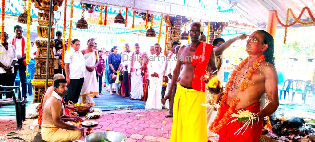 ದೇಗುಲದಲ್ಲಿ ಪ್ರಾರ್ಥನೆ ಫಲನ್ಯಾಸ ಪೂರ್ವಕ ಸಾಮೂಹಿಕ ಪ್ರಾರ್ಥನೆ,ಗಣೇಶ ಪೂಜೆ,ಸ್ಥಾನ ಶುದ್ಧಿ ಪ್ರಸಾದ ಶುದ್ಧಿ,ವಾಸ್ತು ಪೂಜೆ,ಬಲಿ,ರಾಕ್ಷೋಘ್ನ ಹೋಮ,ಅಧಿವಾಸ ಪೂಜೆ,ಅಧಿವಾಸ ಹೋಮ,ರತ್ನನ್ಯಾಸ ಪೂರ್ವಕ ಶ್ರೀದೇವಿ ಪ್ರತಿಷ್ಠೆ ತದಂಗ ನ್ಯಾಸಾದಿಗಳು ಶನಿವಾರ ರಾತ್ರಿ ನಡೆದವು.