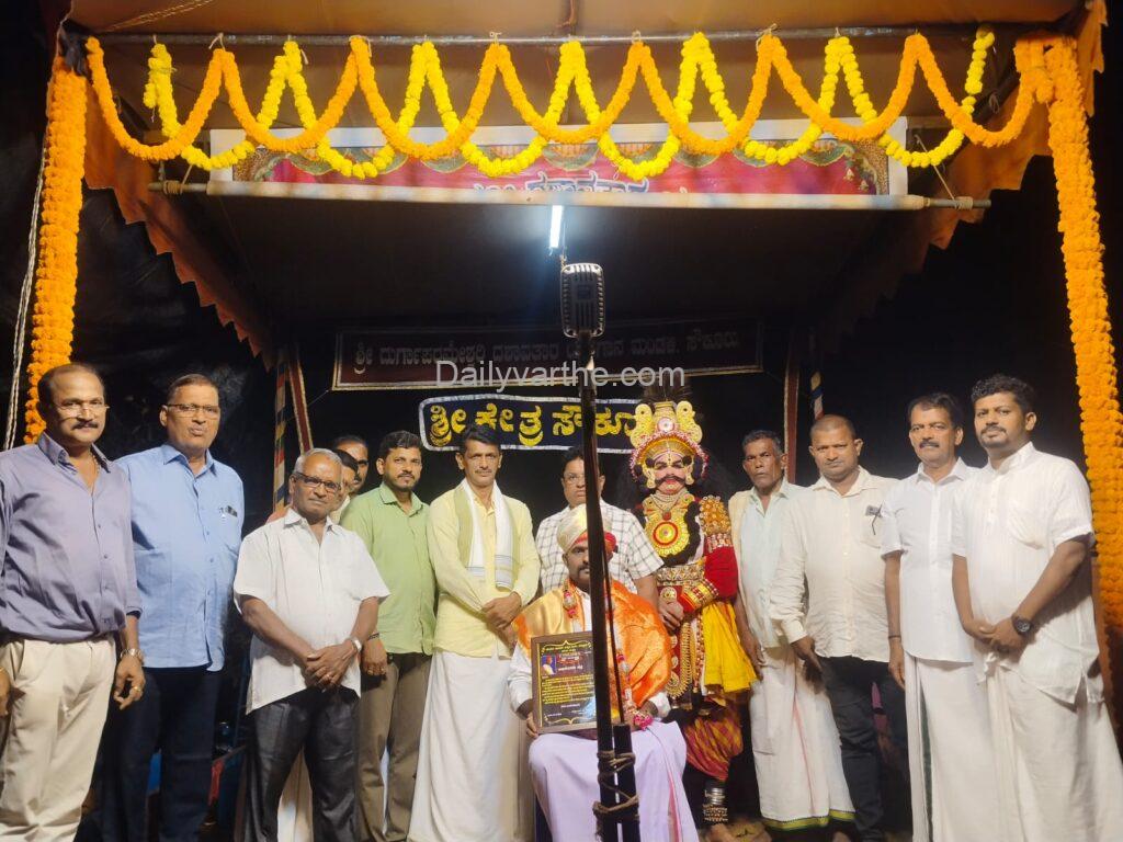ಕೋಟ| ಕೊಕ್ಕರ್ಣೆ ಸೂರಾಲು ಕಂಗಿಬೆಟ್ಟಿನಲ್ಲಿ ಮಾ. 25 ರಂದು ನಡೆದ ಶ್ರೀ ಕ್ಷೇತ್ರ ಸೌಕೂರು ಮೇಳದ ಹರಕೆ ಆಟದ ಪುಣ್ಯ ವೇದಿಕೆಯಲ್ಲಿ ಸದಾಶಿವ ಅಮೀನ್ ಹಿತೈಷಿ ಬಳಗ ಕೊಕ್ಕರ್ಣೆ ವತಿಯಿಂದ ಮೇಳದ ಭಾಗವತ ಸುಮಧುರ ಕಂಠದ ಸಂತೋಷ್ ಶೆಟ್ಟಿ ಯಡಮೊಗೆ ಇವರಿಗೆ ಊರಿನ ಗಣ್ಯರ ಸಮ್ಮುಖದಲ್ಲಿ ಗೌರವಾರ್ಪಣೆ ನೀಡಲಾಯಿತು.
