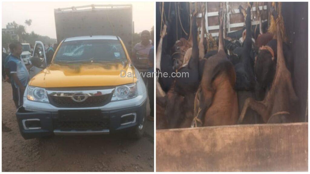 ಅಕ್ರಮವಾಗಿ ಗೋವುಗಳನ್ನು ಸಾಗಿಸಲಾಗುತ್ತಿದೆ ಎಂಬ ಖಚಿತ ಮಾಹಿತಿ ಮೇರೆಗೆ ವಾಹನವನ್ನು ತಡೆದು ಪರಿಶೀಲನೆ ನಡೆಸಿದ ವೇಳೆ ಗೂಡ್ಸ್ ವಾಹನದಲ್ಲಿ ಕಾಲುಗಳನ್ನು ಕಟ್ಟಿ ಅಮಾನುಷವಾಗಿ 25 ಗೋವುಗಳನ್ನು ಸಾಗಿಸುತ್ತಿರುವುದು ಬೆಳಕಿಗೆ ಬಂದಿದೆ.