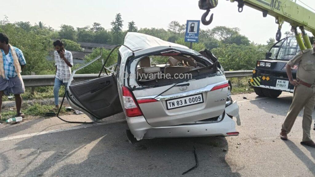 ಕಾರಿನಲ್ಲಿದ್ದ ಅರ್ಜುನ್(28), ಶರವಣ(31) ಮತ್ತು ಸೇಂದಿಲ್(29) ಮೃತರು. ಘಟನೆ ಸ್ಥಳದಲ್ಲೇ ಓರ್ವ ವ್ಯಕ್ತಿ ಸಾವನ್ನಪ್ಪಿದ್ದರೆ, ಜಿಲ್ಲಾಸ್ಪತ್ರೆಯಲ್ಲಿ ಚಿಕಿತ್ಸೆ ಫಲಿಸದೆ ಇಬ್ಬರು ಮೃತಪಟ್ಟಿದ್ದಾರೆ.