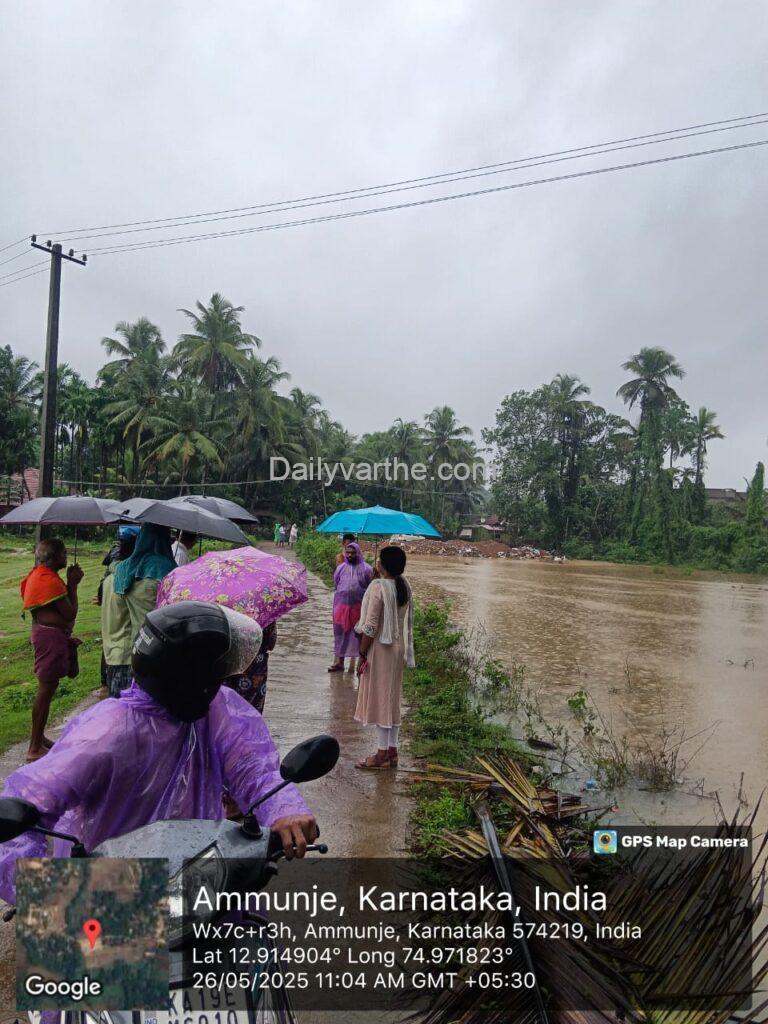 ಅಮ್ಟಾಡಿ ಗ್ರಾಮದ ಲೊರೆಟ್ಟೊ ಎಂಬಲ್ಲಿನ ಪ್ರಾಕೃತಿಕ ವಿಕೋಪದ ಸ್ಥಳಗಳಿಗೆ ಭೇಟಿ ನೀಡಿರುವ ತಹಶೀಲ್ದಾರ್ ಅರ್ಚನಾ ಭಟ್ ನೇತೃತ್ವದ ತಂಡ ಪರಿಶೀಲನೆ ನಡೆಸಿದೆ. ಅಮ್ಮುಂಜೆ ಗ್ರಾಮ ಪಂಚಾಯತು ವ್ಯಾಪ್ತಿಯ ಆಲಾಡಿ ಮತ್ತು ಬಾರಿಂಜೆ ಪ್ರದೇಶಗಳಲ್ಲಿ ಮಳೆ ನೀರು ತುಂಬಿ ಅಪಾಯದ ಸ್ಥಿತಿಯಿದ್ದು, ಇಲ್ಲಿಗೂ ಭೇಟಿ ನೀಡಿದ ತಹಶೀಲ್ದಾರರು ನೀರು ಸರಾಗವಾಗಿ ಹಾದು ಹೋಗಲು ವ್ಯವಸ್ಥೆ ಮಾಡಿದ್ದಾರೆ.