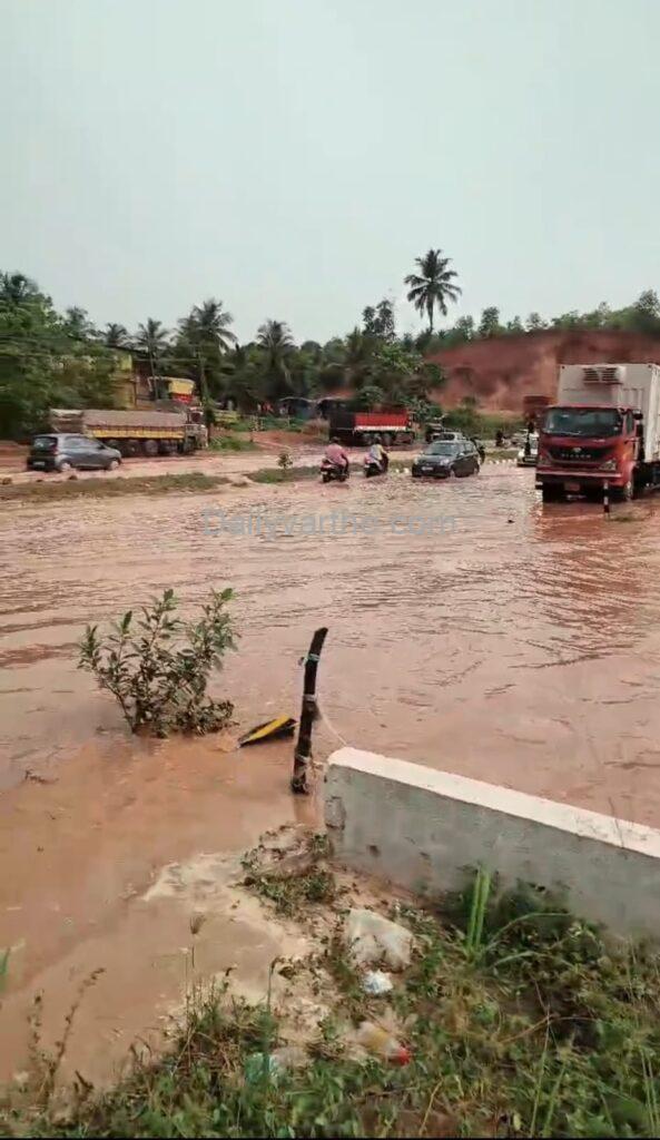 ಮಾಣಿ| ರಾಷ್ಟ್ರೀಯ ಹೆದ್ದಾರಿ ಚತುಷ್ಪಥ ಕಾಮಗಾರಿ ಅವಾಂತರ, ಸೂರಿಕುಮೇರು ಬಳಿ ಕೃತಕ ಹೊಳೆ : ಚರಂಡಿಗಳಲ್ಲಿ ತುಂಬಿದ್ದ ಮಣ್ಣು ತೆಗೆಯದೇ, ರಸ್ತೆಯಲ್ಲಿ ಹರಿಯುತ್ತಿರುವ ಮಳೆ ನೀರು