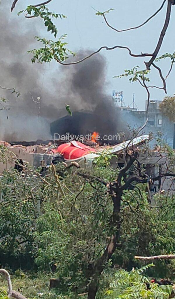 ವಿಮಾನ ಪತನದ ನಂತರ ಭಾರೀ ಬೆಂಕಿ ಹೊತ್ತಿಕೊಂಡಿದ್ದು, ಬೆಂಕಿಯನ್ನು ನಂದಿಸಲು ಅಗ್ನಿಶಾಮಕ ದಳದ ಸಿಬ್ಬಂದಿ ಸ್ಥಳಕ್ಕೆ ಧಾವಿಸಿದ್ದಾರೆ ಎಂದು ಅಗ್ನಿಶಾಮಕ ಅಧಿಕಾರಿ ಜಯೇಶ್ ಖಾಡಿಯಾ ತಿಳಿಸಿದ್ದಾರೆ.