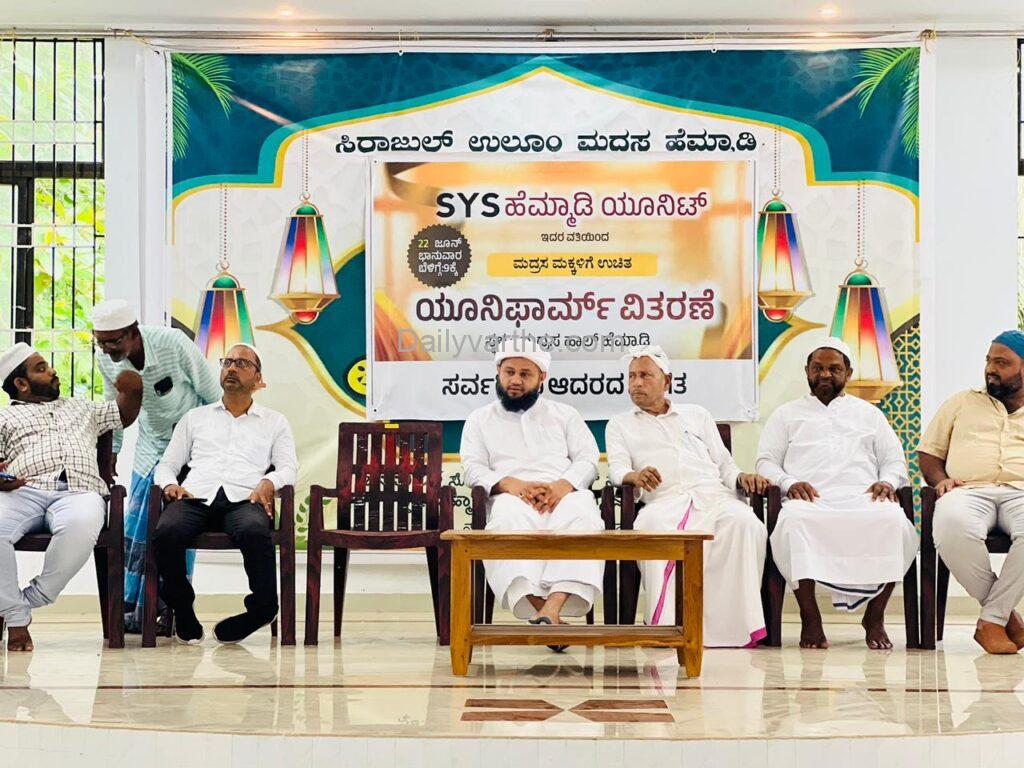 SYS ಹೆಮ್ಮಾಡಿ ಘಟಕ ಇದರ ವತಿಯಿಂದ ಮದರಸ ವಿದ್ಯಾರ್ಥಿಗಳಿಗೆ ಸಮವಸ್ತ್ರ ನೀಡಲಾಯಿತು.