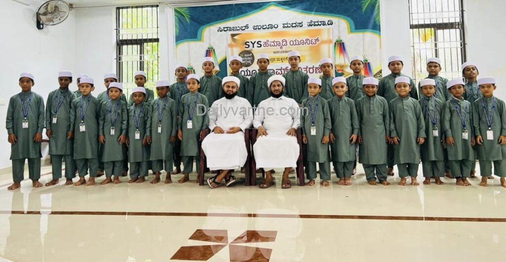 SYS ಘಟಕ ಹೆಮ್ಮಾಡಿ ವತಿಯಿಂದ ಸಿರಾಜುಲ್ ಉಲೂಮ್ ಮದರಸ ವಿದ್ಯಾರ್ಥಿಗಳಿಗೆ ಸಮವಸ್ತ್ರ ವಿತರಣೆ