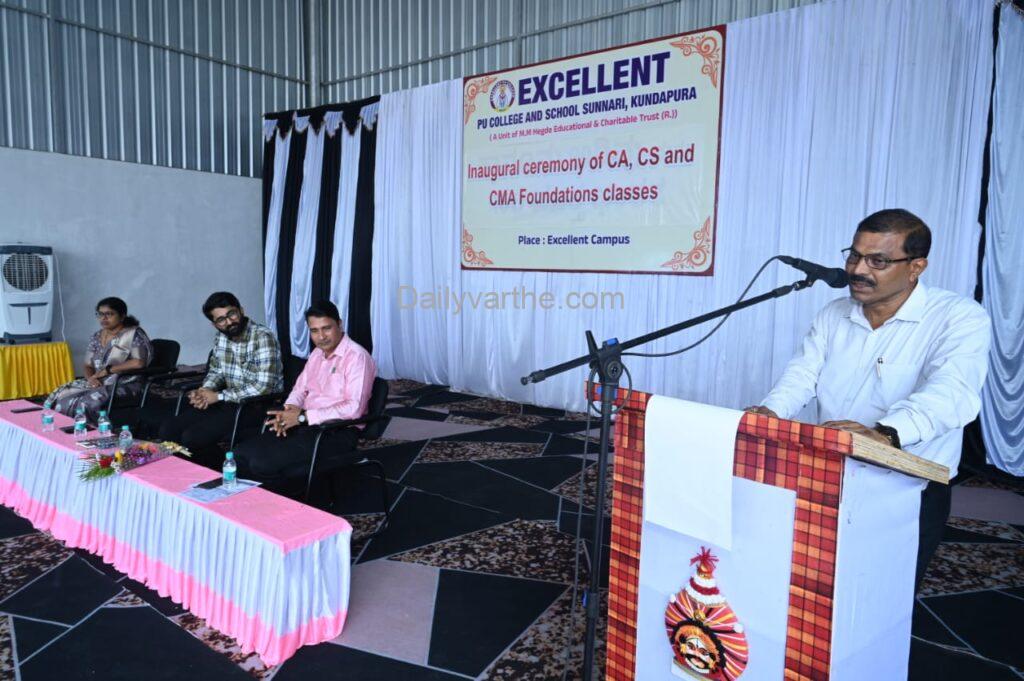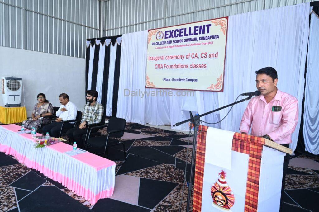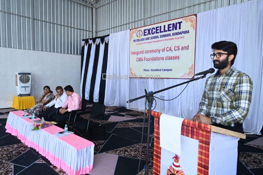 ಎಕ್ಸಲೆಂಟ್ ಪಿಯು ಕಾಲೇಜಿನ ಪ್ರಾಂಶುಪಾಲರಾದ ನಾಗರಾಜ್ ಶೆಟ್ಟಿ ಮಾತನಾಡಿ ಸಿಎ, ಸಿಎಸ್ ಹಾಗೂ ಸಿಎಂಎ ಇದರಲ್ಲಿ ವಿದ್ಯಾರ್ಥಿಗಳಿಗೆ ಇರಬೇಕಾದ ಶಿಸ್ತು ಮತ್ತು ಅದರ ನಿಭಾಯಿಸಲು ಬೇಕಾದ ಸಂಯಮಗಳ ಕುರಿತು ಪ್ರಾಸ್ತಾವಿಕ ನುಡಿಗಳನ್ನಾಡಿದರು.