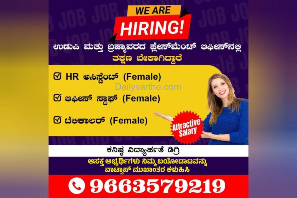 ಉಡುಪಿ ಮತ್ತು ಬ್ರಹ್ಮಾವರದ ಪ್ಲೇಸ್ ಮೆಂಟ್ ಆಫೀಸಿನಲ್ಲಿ ತಕ್ಷಣ ಬೇಕಾಗಿದ್ದಾರೆ.