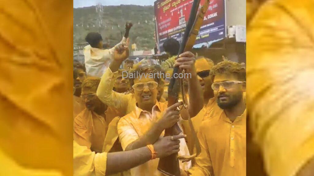 ಗೋಕಾಕ್ನ ಲಕ್ಷ್ಮಿ ದೇವಿ ಜಾತ್ರೆಯಲ್ಲಿ ತಮ್ಮ ಬೆಂಬಲಿಗರೊಂದಿಗೆ ಸಂತೋಷ ಜಾರಕಿಹೊಳಿ ಭಾಗಿಯಾಗಿದ್ದರು. ಈ ವೇಳೆ ಬಂದೂಕು ಹಿಡಿದು ಗಾಳಿಯಲ್ಲಿ ಗುಂಡು ಹಾರಿಸಿದ್ದಾರೆ. ಇದೇ ವೇಳೆ ಅವರ ಬೆಂಬಲಿಗರು ಜೈಕಾರ ಕೂಗಿ ಸಂಭ್ರಮಿಸಿರುವ ವಿಡಿಯೋ ವೈರಲ್ ಆಗಿದೆ.