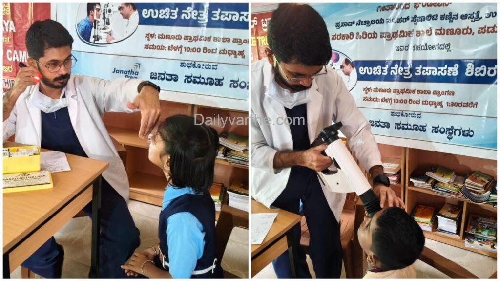 ಗೀತಾನಂದ ಫೌಂಡೇಶನ್ ಮಣೂರು ಇದರ ವತಿಯಿಂದ ವಿದ್ಯಾರ್ಥಿಗಳಿಗೆ ಉಚಿತ ನೇತ್ರ ತಪಾಸಣೆ ಶಿಬಿರ