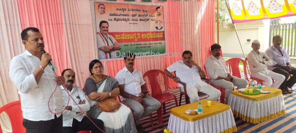 ಬಂಟ್ವಾಳ : ಬಂಟ್ವಾಳ ವಿಧಾನಸಭಾ ಕ್ಷೇತ್ರದ ಪಾಣೆಮಂಗಳೂರು ಬ್ಲಾಕ್ ಕಾಂಗ್ರೆಸ್ ಸಮಿತಿ ಹಾಗೂ ನೆಟ್ಲಮುಡ್ನೂರು ವಲಯ ಕಾಂಗ್ರೆಸ್ ಸಮಿತಿಯ ವತಿಯಿಂದ “ಜನಜಾಗೃತಿ ಅಭಿಯಾನ” ನೇರಳಕಟ್ಟೆಯಲ್ಲಿ ಶನಿವಾರ ಸಂಜೆ ನಡೆಯಿತು.