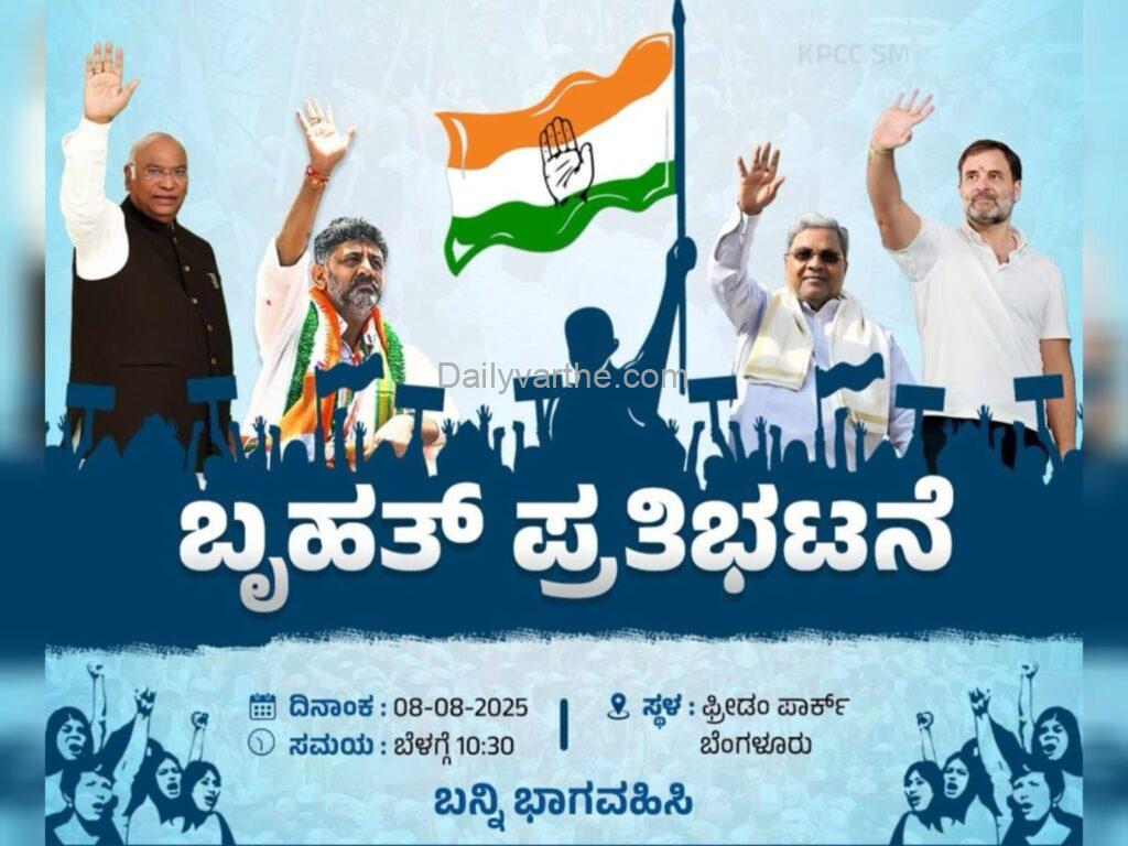 ಬೆಂಗಳೂರು: ಮತಗಳ್ಳತನ ವಿರುದ್ಧ ಲೋಕಸಭೆ ವಿರೋಧ ಪಕ್ಷದ ನಾಯಕ ರಾಹುಲ್ ಗಾಂಧಿ ಅವರ ನೇತೃತ್ವದಲ್ಲಿ ಶುಕ್ರವಾರ ನಗರದ ಸ್ವಾತಂತ್ರ್ಯ ಉದ್ಯಾನದಲ್ಲಿ ಬೃಹತ್ ಪ್ರತಿಭಟನಾ ಸಮಾವೇಶ ನಡೆಯಲಿದೆ.