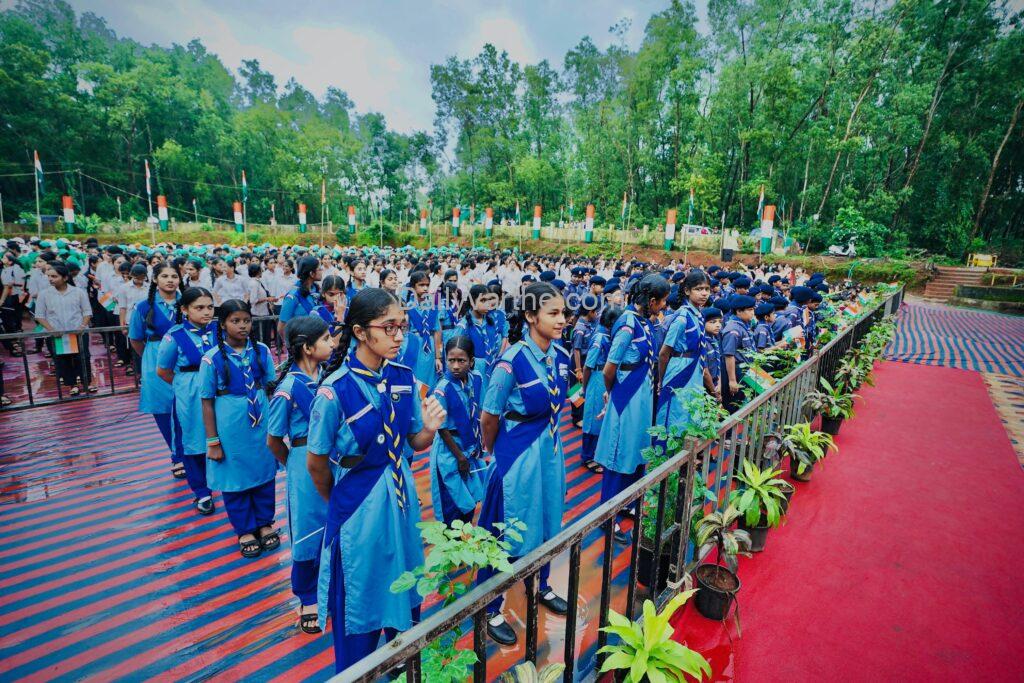 ಮೈದಾನದಲ್ಲಿ ಮೆಲ್ಲನೇ ಬೀಸುತ್ತಿದ್ದ ತಂಗಾಳಿಯ ವಾತಾವರಣದಲ್ಲಿ ವಿದ್ಯಾರ್ಥಿಗಳು ಮೊಳಗಿಸಿದ ’ವಂದೇ ಮಾತರಂ..’ ದೇಶಭಕ್ತಿಯನ್ನು ಉದ್ದೀಪಿಸಿತು.2ಸಾವಿರ ವಿದ್ಯಾರ್ಥಿಗಳು ತಮ್ಮ ಕೈಯಲ್ಲಿ ಬಾವುಟ ಹಿಡಿದುಕೊಂಡು ʼವಿಜಯೀ ವಿಶ್ವ ತಿರಂಗಾ ಪ್ಯಾರಾʼ ಗೀತೆಯನ್ನು ಹಾಡಿ ಸಂಭ್ರಮಿಸಿದರು.