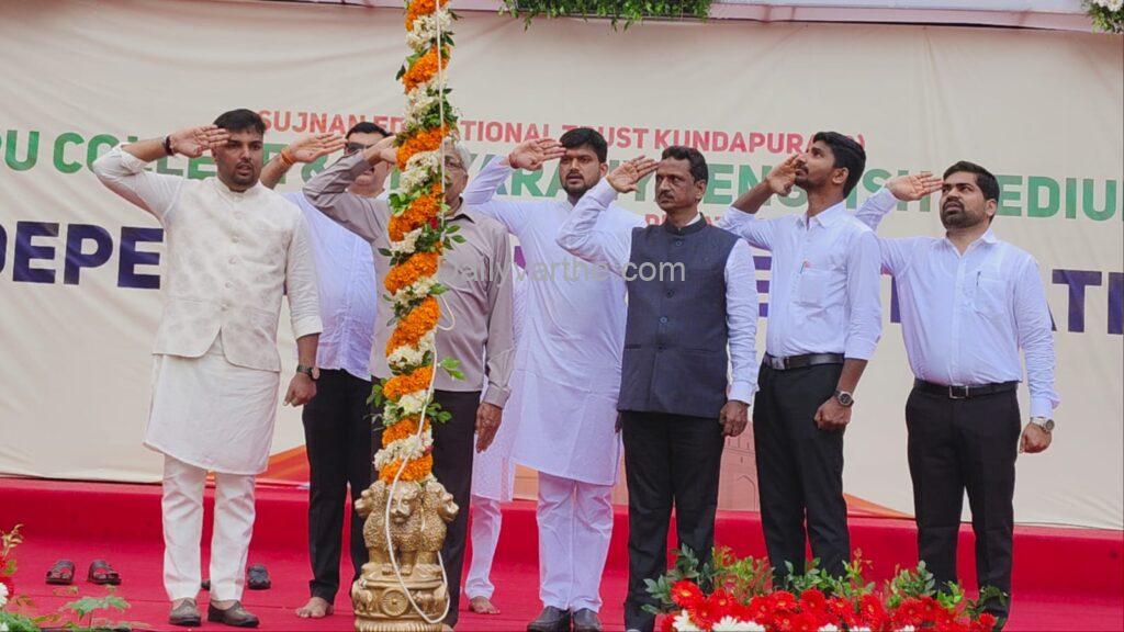 ಕರ್ನಾಟಕ ಸರಕಾರದ ಮಾಜಿ ಸಚಿವ ಕೆ.ಜಯಪ್ರಕಾಶ ಹೆಗ್ಡೆ ಧ್ವಜಾರೋಹಣ ನೆರವೇರಿಸಿದರು. ಈ ಸಂದರ್ಭದಲ್ಲಿ ವಿದ್ಯಾರ್ಥಿಗಳನ್ನು ಉದ್ದೇಶಿಸಿ ಮಾತನಾಡಿದ ಅವರು, ಅತ್ಯಮೂಲ್ಯವಾದ ಸಮಯವನ್ನು ದ್ವೇಷಿಸಲು ಬಳಸಬೇಡಿ; ಇತಿಹಾಸವನ್ನು ಯಾವುದೇ ಕಾರಣಕ್ಕೂ ಮರೆಯಬೇಡಿ; ಇತಿಹಾಸವನ್ನು ಅರಿತಾಗ ಮಾತ್ರ ವರ್ತಮಾನವನ್ನು ಸರಿಯಾಗಿ ಗ್ರಹಿಸಲು ಸಾಧ್ಯವಾಗುತ್ತದೆ ಎಂದರು.