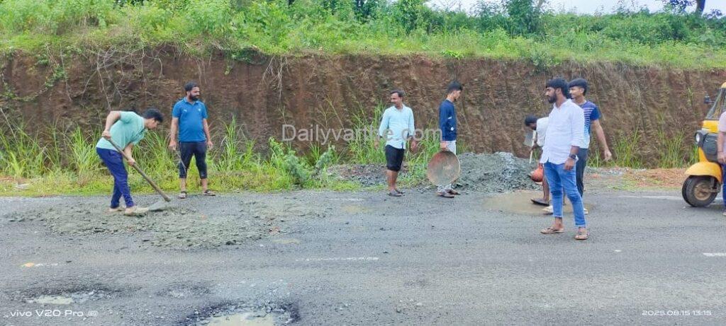 ಕೋಟ: ಶ್ರೀ ವಿನಾಯಕ ಯುವಕ ಮಂಡಲ(ರಿ) ಸಾೖಬ್ರಕಟ್ಟೆಯಡ್ತಾಡಿ ಇದರ ಸದಸ್ಯರು ರಾಜ್ಯ ಹೆದ್ದಾರಿಯಲ್ಲಿ ನಿರ್ಮಾಣವಾದ ರಸ್ತೆ ಗುಂಡಿಗಳಿಂದ ವಾಹನ ಸಂಚಾರಕ್ಕೆ ತೊಡಕಾಗಿದ್ದು ಅಲ್ಲದೇ ಅಪಘಾತ ಸಂಭವಿಸುತ್ತಿದ್ದು ಮನಗೊಂಡು ರಸ್ತೆ ಗುಂಡಿ ಮುಚ್ಚಿ ಶ್ರಮದಾನ ಮಾಡುವ ಮೂಲಕ ಸ್ವಾತಂತ್ರ್ಯೋತ್ಸವನ್ನು ಆಚರಿಸಿಕೊಂಡರು.