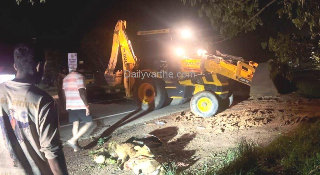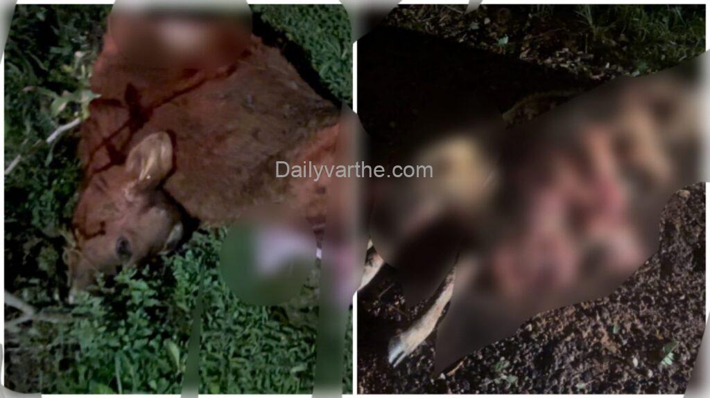 ಕೋಟ: ಕಳೆದ ಹಲವು ವರ್ಷಗಳಿಂದ ಕೋಟ ಸೇರಿದಂತೆ ವಿವಿಧ ರಾಷ್ಟ್ರೀಯ ಹೆದ್ದಾರಿಗಳಲ್ಲಿ ಬಿಡಾಡಿ ಗೋವುಗಳ ಅಪಘಾತ ಹೆಚ್ಚುತ್ತಿದ್ದು. ಈ ಹಿನ್ನಲ್ಲೆಯಲ್ಲಿ ಮಂಗಳವಾರ ನಡುರಾತ್ರಿ ಬಾರಿ ಗಾತ್ರದ ಎನ್ನಲಾದ ವಾಹನವೊಂದು ಎರಡು ಬೀದಿಯಲ್ಲಿರುವ ಬೀಡಾಡಿ ಗೋವುಗಳಿಗೆ ಡಿಕ್ಕಿ ಸಂಭವಿಸಿದ್ದು ಎನ್ನಲಾಗಿದ್ದು ಎರಡು ಗೋವುಗಳ ದೇಹಗಳು ತುಂಡು ತುಂಡಾಗಿ ರಸ್ತೆಯ ಇಕ್ಕೆಲಗಳಲ್ಲಿ ಸೇರಿಕೊಂಡಿದೆ.