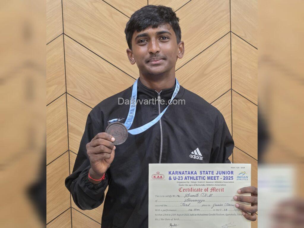 ರಾಜ್ಯಮಟ್ಟದ ಜಾವೆಲಿನ್ ಸ್ಪರ್ಧೆ: ಕುಂದಾಪುರ ಸುಜ್ಞಾನ ಪಿಯು ಕಾಲೇಜಿನ ವಿದ್ಯಾರ್ಥಿ ಸಮಿತ್ ಮೂರನೇ ಸ್ಥಾನ
