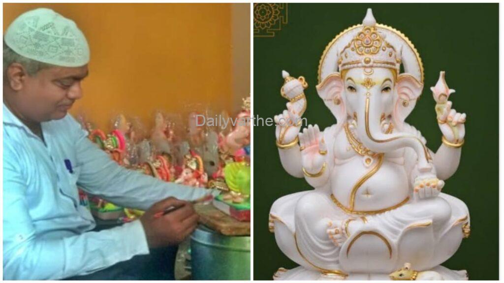 ಗಡಿನಾಡಿನಲ್ಲಿ ಗಣೇಶ ಮೂರ್ತಿ ತಯಾರಿಸಿ ಕೋಮುಸೌಹಾರ್ದ ಸಂದೇಶ ಸಾರುತ್ತಿರುವ ಮುಸ್ಲಿಂ ಕುಟುಂಬ – ಶಿಕ್ಷಣದ ನಡುವೆಯು ಗಣಪತಿ ವಿಗ್ರಹವನ್ನು ರಚಿಸುವ ಕಲಾಕಾರ ಶಿಕ್ಷಕ, ಇವರು ಹಿಂದೂ ಸಂಸ್ಕೃತಿಯ ಆರಾಧಕ.!