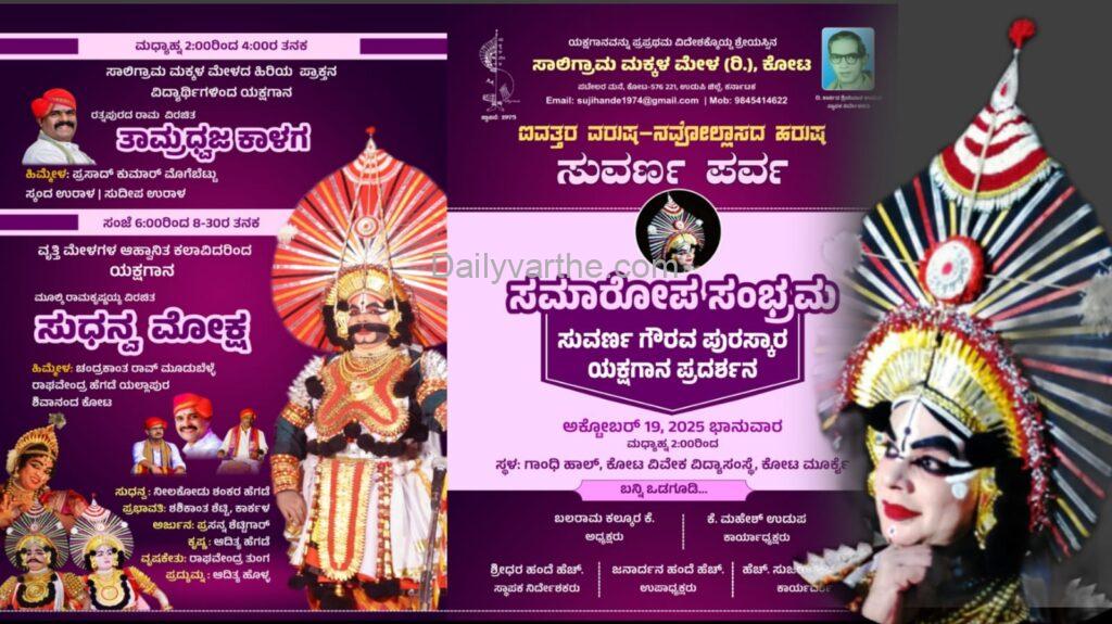 ಅ.19 ರಂದು ಸಾಲಿಗ್ರಾಮ ಮಕ್ಕಳ ಮೇಳದ 50ರ ಸಂಭ್ರಮದ ಸುವರ್ಣ ಪರ್ವ ಸಮಾರೋಪ ಸಮಾರಂಭ