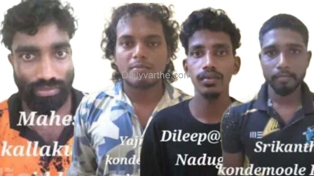 ಬಂಧಿತ ಆರೋಪಿಗಳನ್ನು ನಿಡ್ಡೋಡಿಯ ಮಹೇಶ, ಕಟೀಲು ಪರಿಸರದ ಯಜ್ನೇಶ್, ದಿಲೀಪ್ ಹಾಗೂ ಶ್ರೀಕಾಂತ್ ಎಂದು ಗುರುತಿಸಲಾಗಿದೆ.