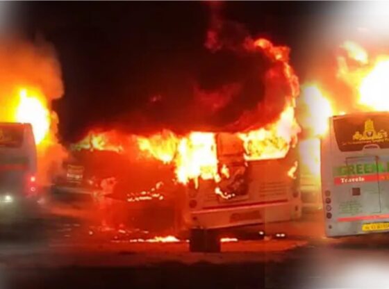 ಗ್ರೀನ್ ಲೈನ್ ಟ್ರಾವೆಲ್ಸ್ಗೆ ಸೇರಿದ ಈ ಬಸ್ ಬೆಂಗಳೂರು-ಅನಂತಪುರ ಹೈವೇನಲ್ಲಿ ಹೊರಟಿತ್ತು. ಈ ವೇಳೆ ಟಯರ್ ಬ್ಲಾಸ್ಟ್ ಆಗಿ ಏಕಾಏಕಿ ಬೆಂಕಿ ಹೊತ್ತಿಕೊಂಡಿದೆ.