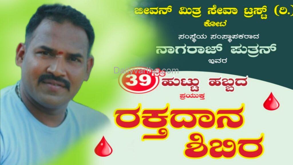 ಕೋಟ ಜೀವನ್ ಮಿತ್ರ ನಾಗರಾಜ್ ಪುತ್ರನ್ ಹುಟ್ಟುಹಬ್ಬದ ಪ್ರಯುಕ್ತ ಬೃಹತ್ ರಕ್ತದಾನ ಶಿಬಿರ