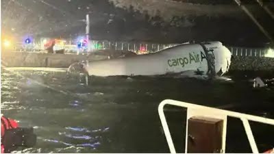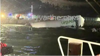 ರನ್ವೇಯಿಂದ ಜಾರಿ ಸಮುದ್ರಕ್ಕೆ ಬಿದ್ದ ಕಾರ್ಗೋ ವಿಮಾನ, ಇಬ್ಬರು ಸಾವು