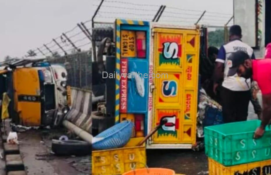 ಮಂಗಳೂರು: ಚಾಲಕನ ನಿಯಂತ್ರಣ ತಪ್ಪಿ ಮೀನು ಸಾಗಾಟದ ಪಿಕಪ್ ವಾಹನ ಪಲ್ಟಿ – ಮೂವರಿಗೆ ಗಾಯ!