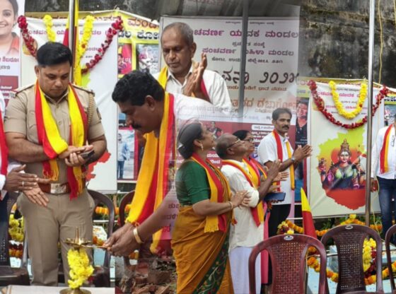 ಕನ್ನಡ ಧ್ವಜವನ್ನು ಕೋಟ ಆರಕ್ಷಕ ಠಾಣಾಧಿಕಾರಿ ಪ್ರವೀಣ್ ಕುಮಾರ್ ಅರಳಿಸಿ ಭುವನೇಶ್ವರಿಗೆ ಪುಷ್ಭ ನಮನ ಸಲ್ಲಿಸಿದರು.