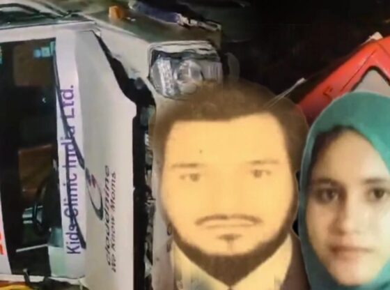 ಅಪಘಾತದಲ್ಲಿ ಇಸ್ಮಾಯಿಲ್ (40) ಮತ್ತು ಪತ್ನಿ ಸಮೀನ್ ಬಾನು ಸಾವನ್ನಪ್ಪಿದ್ದಾರೆ.