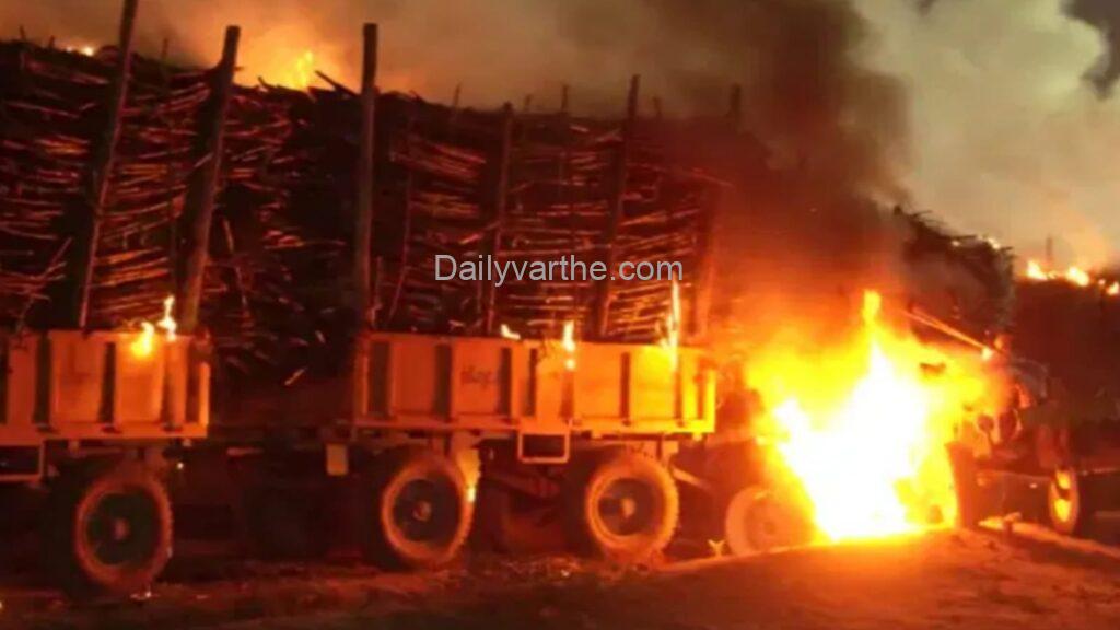 ಮುಧೋಳ | ಕಬ್ಬು ಬೆಳೆಗಾರರ ರೋಷಾಗ್ನಿ: 100ಕ್ಕೂ ಹೆಚ್ಚು ಟ್ರ್ಯಾಕ್ಟರ್ ಟ್ರಾಲಿಗಳಿಗೆ ಬೆಂಕಿ, ಸಾವಿರಾರು ಟನ್ ಕಬ್ಬು ಭಸ್ಮ!
