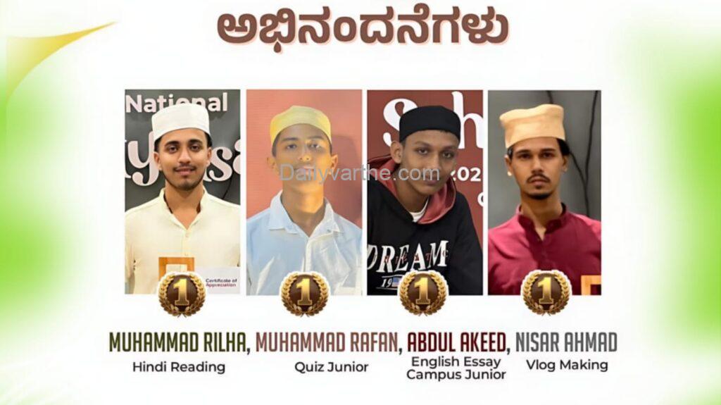 ಉಡುಪಿ ಜಿಲ್ಲಾ ವ್ಯಾಪ್ತಿಯ ಸ್ಪರ್ಧಾರ್ಥಿಗಳ ಪೈಕಿ ಮುಹಮ್ಮದ್ ರಿಲಾ ಕುಂದಾಪುರ ಡಿವಿಷನ್- (ಹಿಂದಿ ಓದುವಿಕೆ-ಜೂನಿಯರ್ ವಿಭಾಗ, ಮುಹಮ್ಮದ್ ರಫಾನ್*-ಕಾಪು ಡಿವಿಷನ್ (ಕ್ವಿಝ್-ಜೂನಿಯರ್ ವಿಭಾಗ, ಅಬ್ದುಲ್ ಅಕೀದ್ ಉಡುಪಿ ಡಿವಿಷನ್ (ಪ್ರಬಂಧ ಬರವಣಿಗೆ – ಇಂಗ್ಲಿಷ್ – ಕ್ಯಾಂಪಸ್ ಜೂನಿಯರ್ ವಿಭಾಗ), ಹಾಗೂ ನಿಸಾರ್ ಅಹ್ಮದ್ – ಬೈಂದೂರು ಡಿವಿಷನ್ (ವ್ಲಾಗ್ ಮೇಕಿಂಗ್-ಕ್ಯಾಂಪಸ್ ಸೀನಿಯರ್ ವಿಭಾಗ) ಮೇಲ್ಕಂಡ ನಾಲ್ಕು ಸ್ಪರ್ಧಾರ್ಥಿಗಳು ರಾಷ್ಟ್ರಮಟ್ಟದಲ್ಲಿ ಪ್ರಥಮ ಸ್ಥಾನ ಪಡೆದದ್ದು ಮಾತ್ರವಲ್ಲದೆ ತನ್ನ ಕುಟುಂಬಸ್ಥರು ಮತ್ತು ತನ್ನ ತಾಯ್ನಾಡಿಗೆ ಹೆಮ್ಮೆಯನ್ನು ತಂದುಕೊಟ್ಟು ಪ್ರತ್ಯೇಕವಾಗಿ ಉಡುಪಿ ಜಿಲ್ಲೆಗೆ ಕೀರ್ತಿ ತಂದಿರುತ್ತಾರೆ.