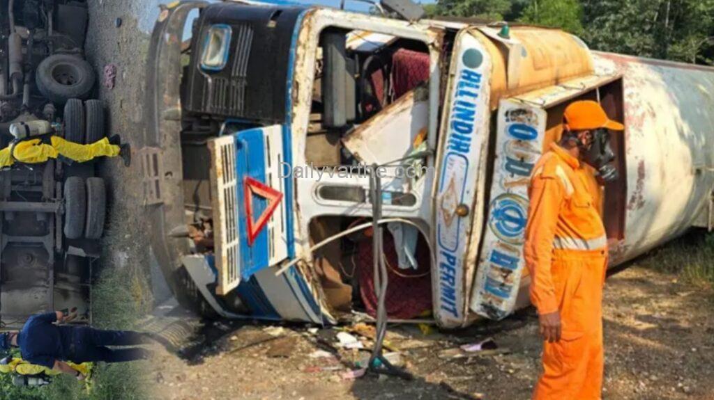 ಅಂಕೋಲಾ| ಚಾಲಕನ ನಿಯಂತ್ರಣ ತಪ್ಪಿ ಗ್ಯಾಸ್ ಟ್ಯಾಂಕರ್ ಪಲ್ಟಿ – ಅಂಕೋಲಾ–ಯಲ್ಲಾಪುರ ಹೆದ್ದಾರಿ ಸಂಚಾರ ಬಂದ್!