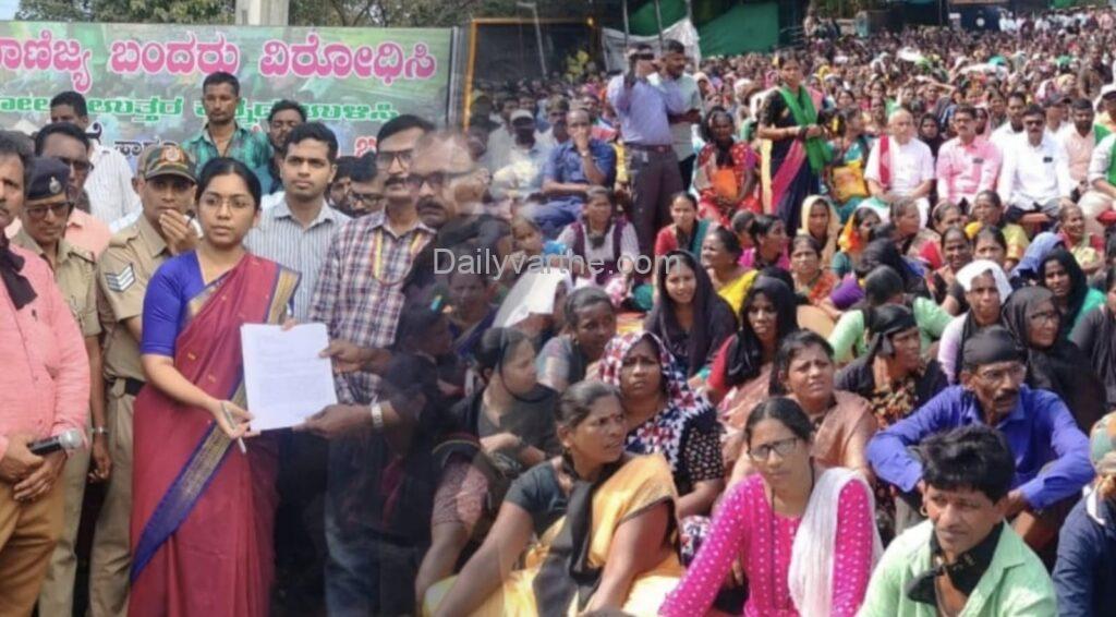 ಬೃಹತ್ ಪ್ರಮಾಣದ ಮೆರವಣಿಗೆ ಹಾಗೂ ಪ್ರತಿಭಟನಾ ಸಭೆಯ ತೀವ್ರತೆ ಹೆಚ್ಚುತ್ತಿದ್ದಂತೆ ಜಿಲ್ಲಾಧಿಕಾರಿ ಲಕ್ಷ್ಮೀಪ್ರೀಯಾ ಅವರು ಪ್ರತಿಭಟನಾ ಸ್ಥಳಕ್ಕೆ ಆಗಮಿಸಿದರು. ಹೋರಾ ಟಗಾರರು ತಮ್ಮ ಸಮಸ್ಯೆಗಳನ್ನು ಅವಲತ್ತುಕೊಂಡರು. ಮನವಿಯನ್ನು ಸ್ವೀಕರಿಸ ಇದನ್ನು ಸರಕಾರಕ್ಕೆ ಕಳಿಸುವುದಾಗಿ ಹೇಳಿದರು.