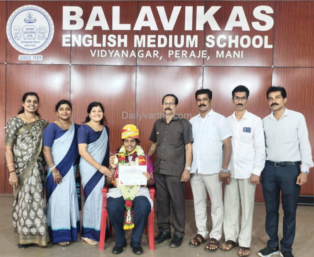 ವಿಟ್ಲ : ಶಾಲಾ ಶಿಕ್ಷಣ ಇಲಾಖೆಯ ವತಿಯಿಂದ ನಡೆದ ರಾಜ್ಯಮಟ್ಟದ 17 ರ ವಯೋಮಾನದ ಹುಡುಗಿಯರ ಚಕ್ರ ಎಸೆತ ಸ್ಪರ್ಧೆಯಲ್ಲಿ ಪ್ರಥಮ ಸ್ಥಾನ ಪಡೆದು ರಾಷ್ಟ್ರಮಟ್ಟದ ಕ್ರೀಡಾಕೂಟಕ್ಕೆ ಆಯ್ಕೆಯಾಗಿರುವ ಮಾಣಿ- ಪೆರಾಜೆಯ ಬಾಲವಿಕಾಸ ಆಂಗ್ಲ ಮಾಧ್ಯಮ ಶಾಲೆಯ 9 ನೇ ತರಗತಿಯ ವಿದ್ಯಾರ್ಥಿನಿ ಕೃತಿ ಎನ್.ಪಿ ಅವರನ್ನು ಶಾಲಾ ವತಿಯಿಂದ ಸನ್ಮಾನಿಸಲಾಯಿತು.