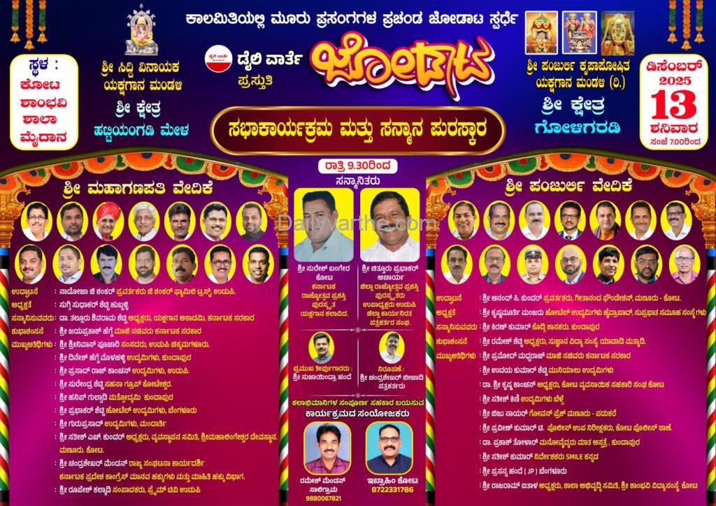 ಅಪರೂಪದ ಪ್ರಚಂಡ ಯಕ್ಷಗಾನ ಜೋಡಾಟ ಸ್ಪರ್ಧೆ. ಡಿ. 13 ರಂದು ಕೋಟದಲ್ಲಿ