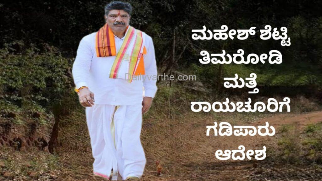 ಮಹೇಶ್ ಶೆಟ್ಟಿ ತಿಮರೋಡಿ ಮತ್ತೆ ರಾಯಚೂರಿಗೆ ಗಡಿಪಾರು ಆದೇಶ