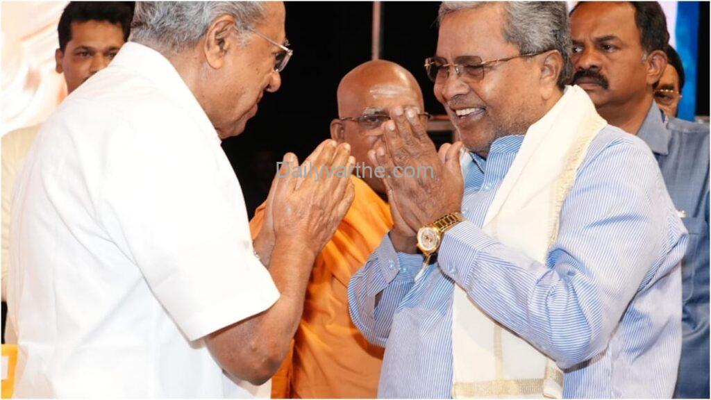 ಕೇರಳದ ವರ್ಕಳದಲ್ಲಿ ಶಿವಗಿರಿ ಮಠದ ಕಾರ್ಯಕ್ರಮದಲ್ಲಿ ಭಾಗವಹಿಸುವುದಕ್ಕಾಗಿ ರಾಜಧಾನಿ ತಿರುವನಂತಪುರಕ್ಕೆ ಆಗಮಿಸಿದ ಸಿಎಂ ಸಿದ್ದರಾಮಯ್ಯ ಕೇರಳ ಸಿಎಂ ಪಿಣರಾಯಿ ವಿಜಯನ್ರನ್ನು ಭೇಟಿಯಾಗಿ ಆತ್ಮೀಯವಾಗಿ ಮಾತನಾಡಿದರು.