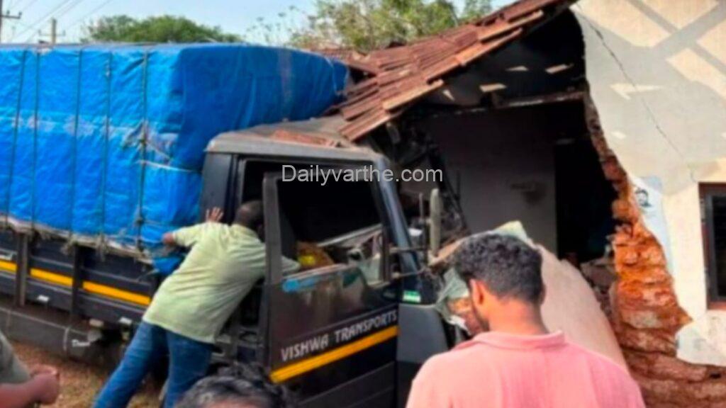 ಈ ಸಂದರ್ಭ ಮನೆಯವರು ಮತ್ತು ಗೂಡ್ಸ್ ಚಾಲಕ, ಸಣ್ಣ ಪುಟ್ಟ ಗಾಯಗೊಂದಿಗೆ ಪಾರಾಗಿದ್ದಾರೆ.